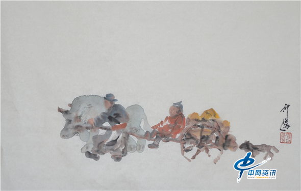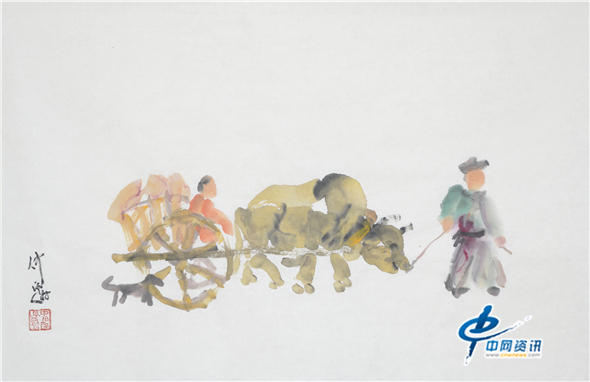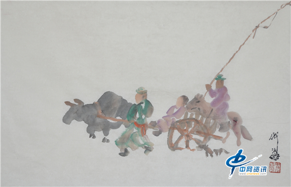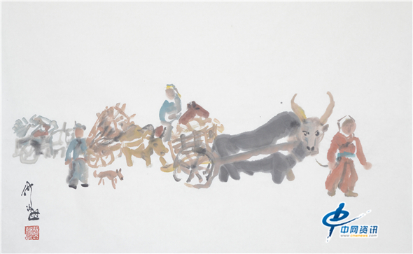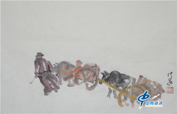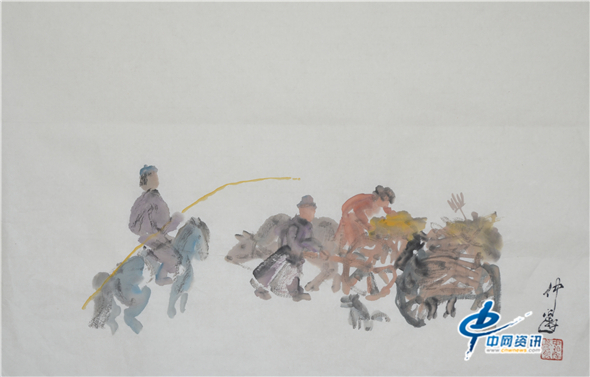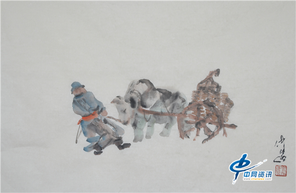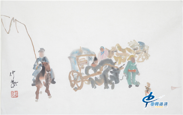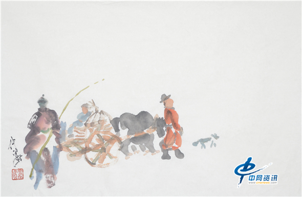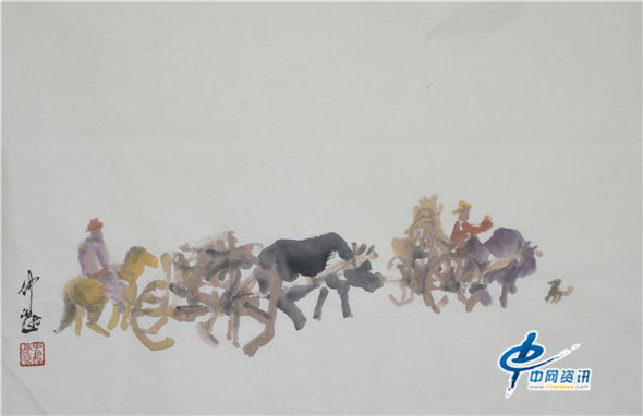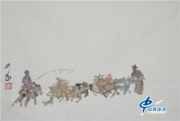 第十五张图片:跟着牛车后面的马群(仲泊游速写作品)