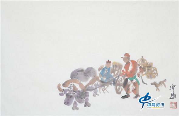 第十四张图片:老爹地上走儿子马上行(仲泊游速写作品)