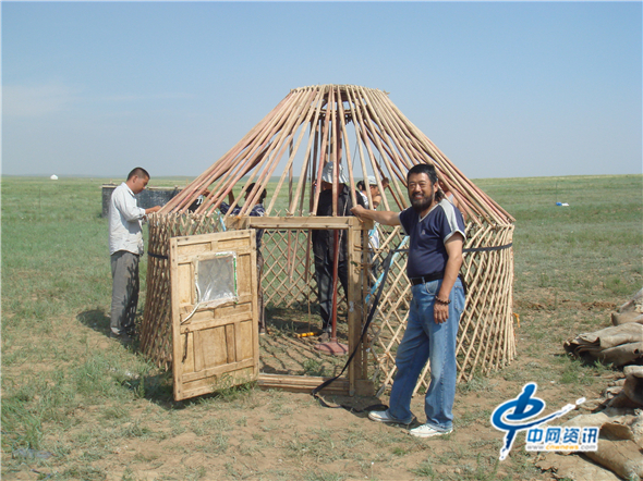 第十六张图片:再装蒙古包(右一为画家仲泊游)