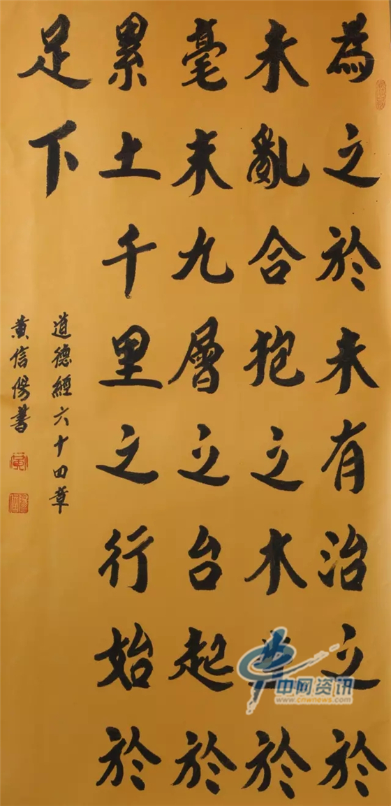 黄信阳道长,号中和子。现任中国道教协会副会长, 北京市道教协会会长,河北省道教协会名誉会长,全国政协委员,河北省政协常委,北京市人大代表,中国道教协会道家书画院院长,上善慈善基金主任。编著有《道教教理教义》、《全真必读》、《道教楹联选编》、《人生格言》、《道教常识问答》、《老君说百病百药》注解、《全真道》、《道教戒律》,出版社发行《修道养生真诀》、《道教常识》、《中国道教文化典藏》等。