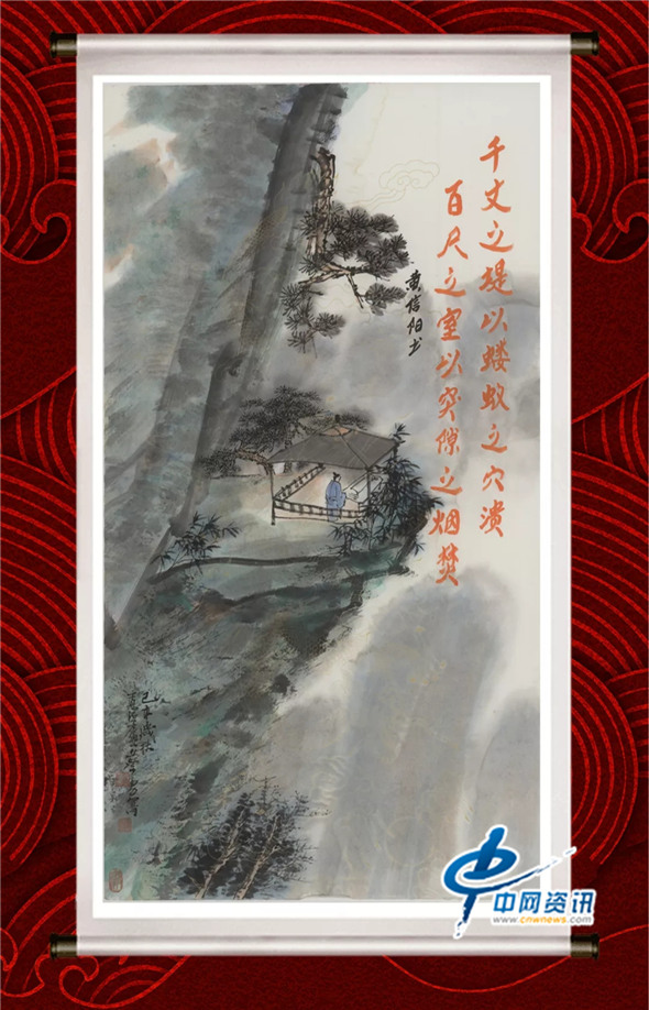 16、千丈之堤,以蝼蚁之穴溃;百尺之室,以突隙之烟焚。(画作上书法由黄信阳题写)