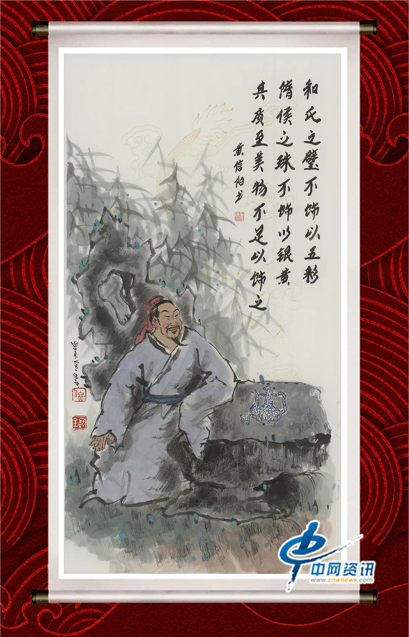 18、和氏之璧,不饰以五彩;隋侯之珠,不饰以银黄。其质至美,物不足以饰之。(画作上书法由黄信阳题写)