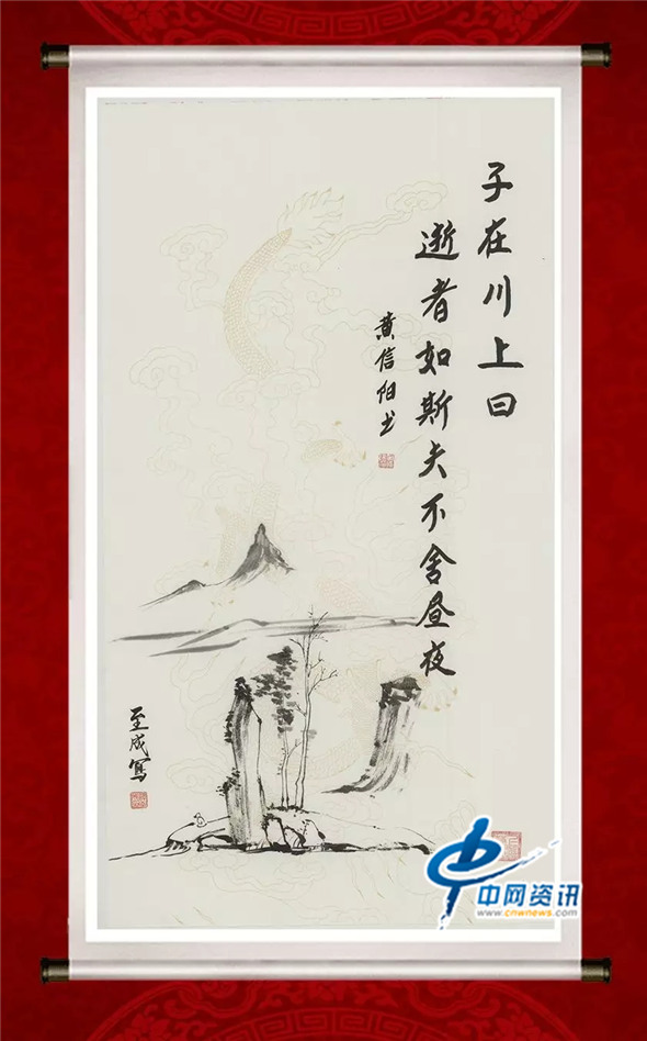 6、子在川上曰:逝者如斯夫!不舍昼夜。(画作上书法由黄信阳题写)