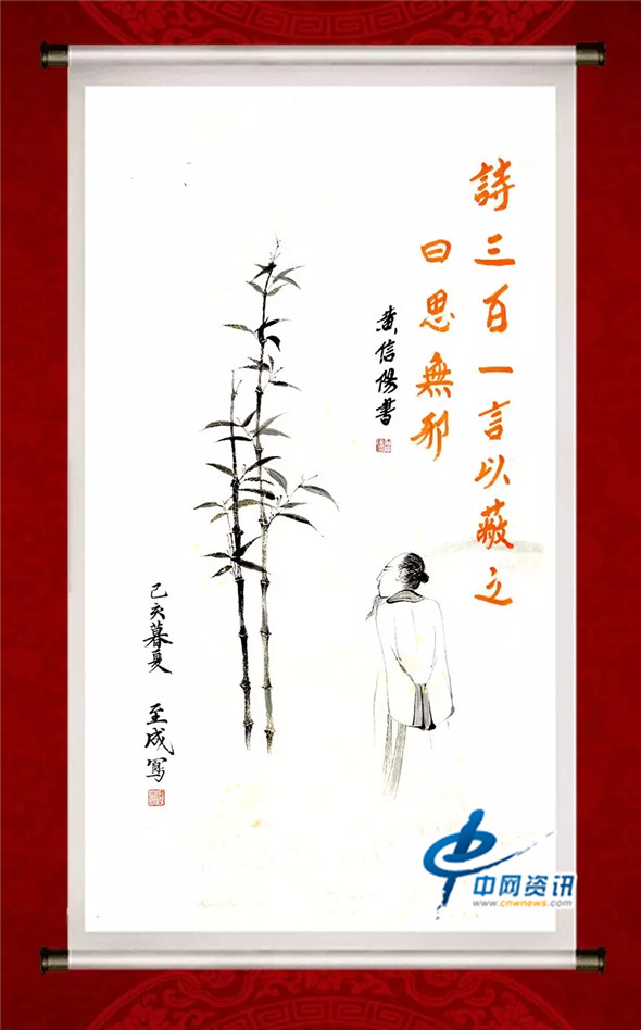 9、诗三百,一言以蔽之,曰:思无邪。(画作上书法由黄信阳题写)