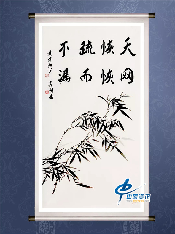 18、天网恢恢,疏而不漏(画作上书法由黄信阳题写)