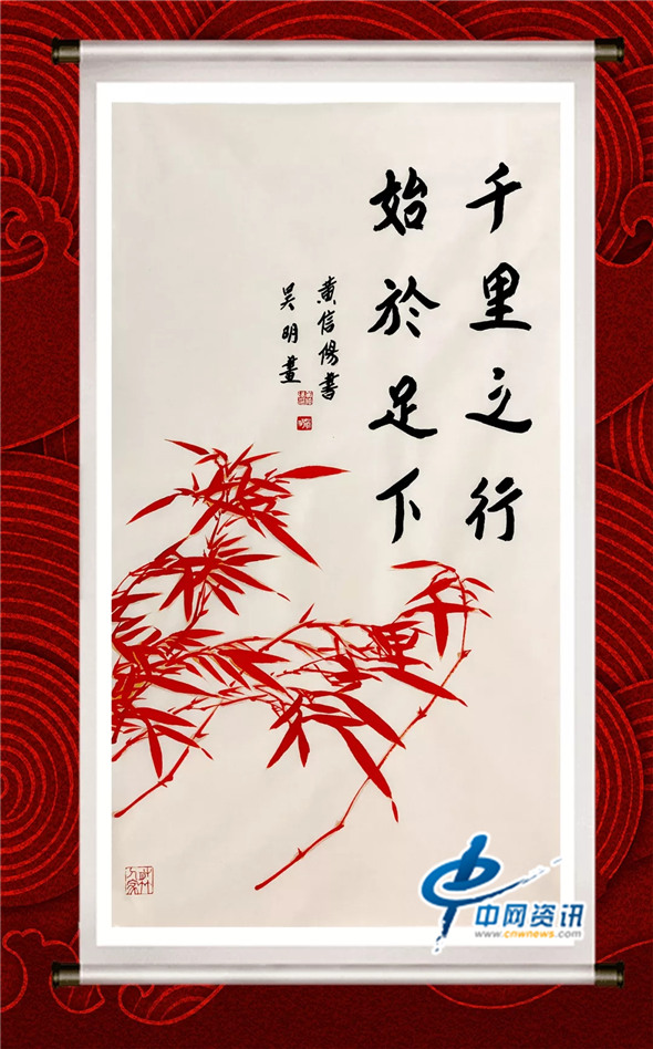 19、千里之行,始于足下(画作上书法由黄信阳题写)