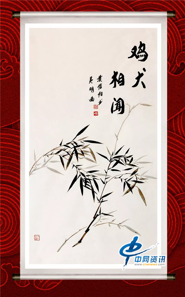 25、鸡犬相闻(画作上书法由黄信阳题写)