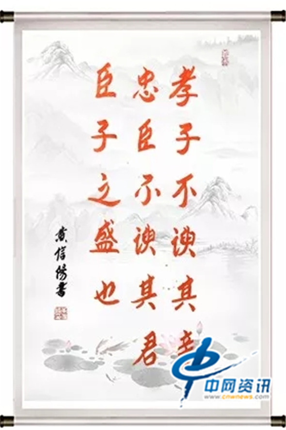 19、孝子不谀其亲,忠臣不谄其君,臣、子之盛也。(画作上书法由黄信阳题写)