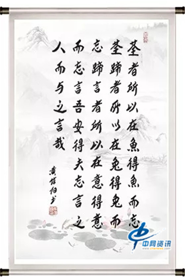 荃者所以在鱼,得鱼而忘荃;蹄者所以在兔,得兔而忘蹄;言者所以在意,得意而忘言。吾安得夫忘言之人而与之言哉!(画作上书法由黄信阳题写)