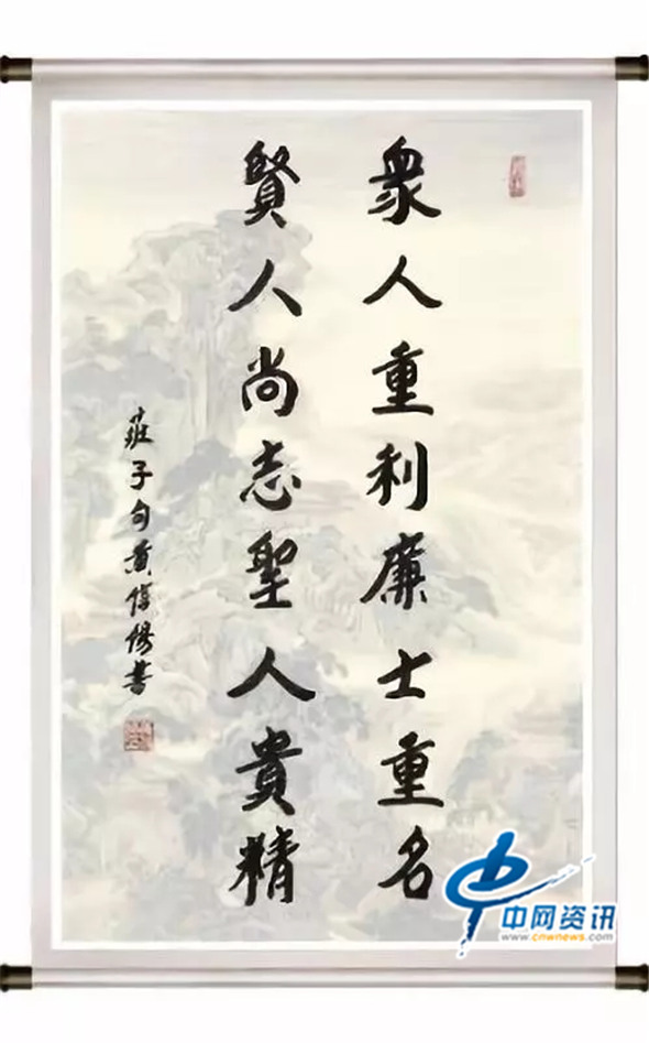众人重利,廉士重名,贤人尚志,圣人贵精。(画作上书法由黄信阳题写)