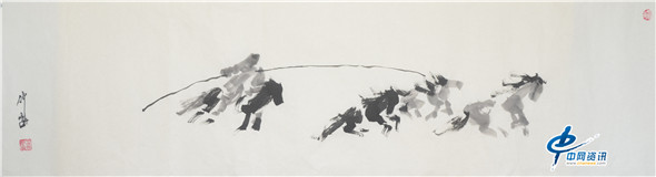 【经东网书画】艺术家仲泊游多年来数次往返于草原,深入牧区、体验生活,把在草原之所见记于心中;速写于笔下,带着浓浓的草原之情,用画笔记录着这片大草原上的牧民生活场景。近日,小编获得仲泊游最新创意的草原速记系列作品,本篇为“套野马”,分享给广大书画爱好者。