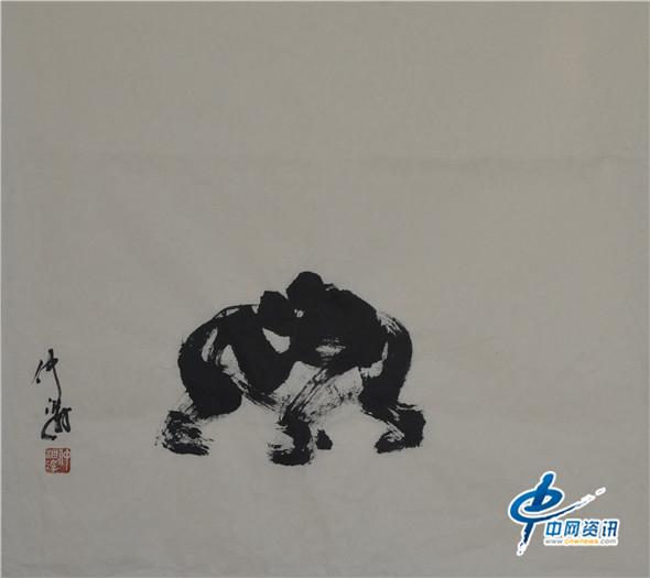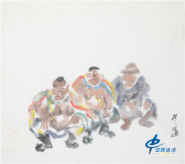 【经东网书画】艺术家仲泊游多年来数次往返于草原,深入牧区、体验生活,把在草原之所见记于心中,速写于笔下,带着浓浓的草原之情,用画笔记录着这片大草原上的牧民生活场景。近日,小编获得仲泊游最新创意的草原速记系列作品,以下为”博克摔跤手们“,仲泊游通过简洁的笔墨构画了草原上博克摔跤手们的丰富生活,分享给广大书画爱好者。