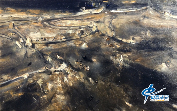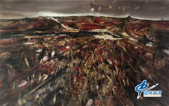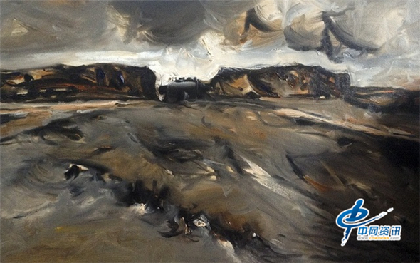 从晋北大地回到北京,脱忠伟就约我去看画。当我面对一幅幅散发着浓重油彩味道的原作时,当我面对扑面压来的枯黄的土地、墨黑如夜的阴沉和那凝涩厚重的笔触时,一种难以言说的沉重感觉充溢着我的脑海。沉厚的土地,如墨的世界,孤独的城堡,残阳的余晖,凝重的苦涩和阴郁的深沉,这是画家眼中的晋北大地,是画家在自觉不自觉中对于晋北大地的独立个人思考,是画家灵魂与晋北土地的对话,是晋北大地赋予画家的心灵感受。