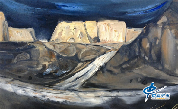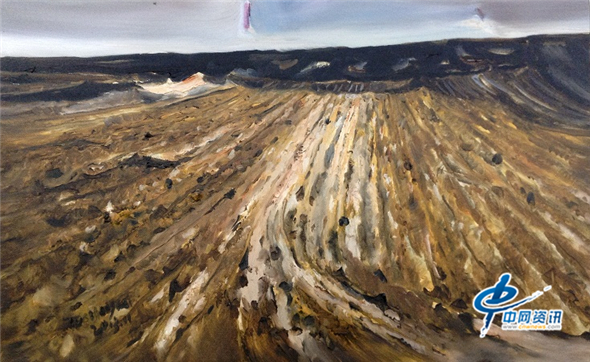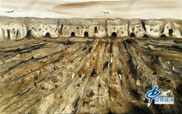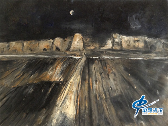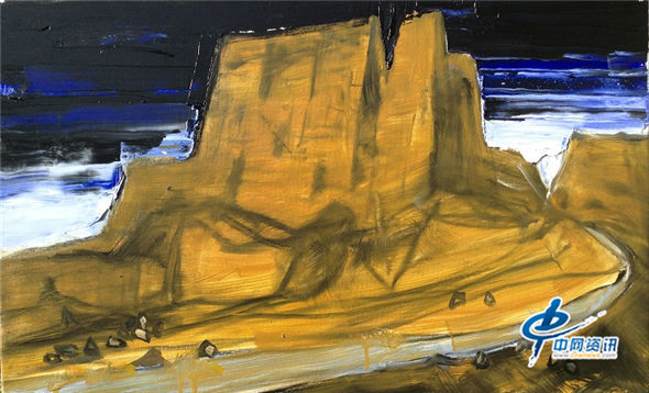 2013年从深秋到初冬,脱忠伟背着行囊,怀着对艺术的迷恋,冒着晋北大地的寒风,用他深沉的思考和凝重的笔触描绘着晋北的苍茫大地。晋北大地的雄浑厚重,寒风中古堡的肃穆沉郁,黄沙飞扬的恢弘苍凉,自然的苦涩,人文的凝滞,历史的记忆,激荡着画家敏感细腻的神经。每一片黄土地的故事,每一个断垣城堡的过去,历史的遗迹和现代文明的交映,激活着画家的思考,每天都有每天的感动、思考、怅惘,喜悦,悲凉,画笔随着思绪而游动,记忆着感人的力量。在近乎无意识的激情涤荡中,在二十多天的日子里,脱忠伟画出了30多幅写生作品。