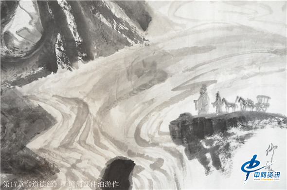 【经东网书画】近日,记者在位于北京西二环的仲泊游工作室看到了近200米长的大型画作八十一幅老子《道德经》画境系列作品,场面极其震撼。