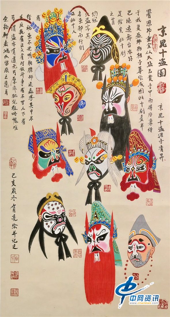 本次展览有纪清远、田有亮、盛华等十几位艺术家的50余幅作品参展,以戏曲人物、京剧名流剧照、脸谱艺术造型创作的美术作品为主。表现了京剧大师、戏曲绘画、脸谱艺术的作品,将京剧、绘画两种艺术形式相结合,不仅突出了京剧带给人的美感,也从绘画上淋漓尽致地刻画了文化内涵,完美地体现了艺术所带来的视觉上、精神上双重的冲击力和感染力。同时也是在国庆、中秋佳节之际,艺术家们向全区人民奉献上的厚礼。