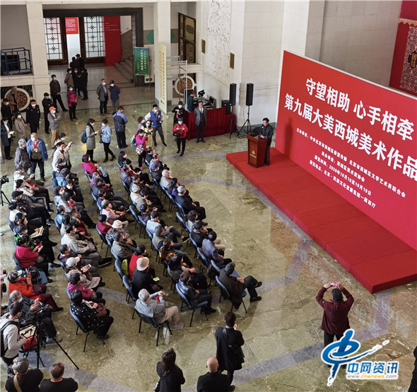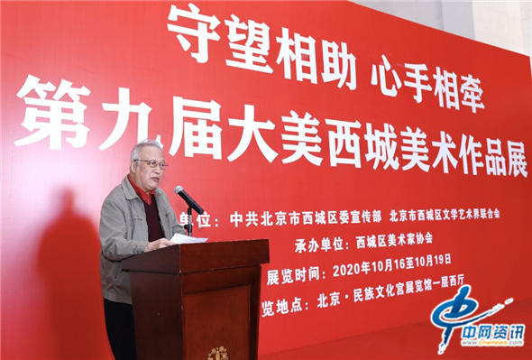 【经东网书画消息】庚子新春伊始,一场突如其来的新冠疫情肆虐人类和祖国大地,中国共产党始终把人民群众生命健康放在首位。在全国人民齐心协力共同奋斗,终于取得了抗疫阶段性的重大战略成果,令世人瞩目。为了讴歌赞美全国万众一心、同舟共济,共同抗击疫情的壮举和感人事迹,传递人间的大爱,弘扬中华民族的伟大精神,2020年10月16日,由中共北京市西城区委宣传部、西城区文联主办,西城区美术家协会承办的“守望相助、心手相牵——第九届大美西城美术作品展”,在北京民族文化宫展览馆隆重开幕。