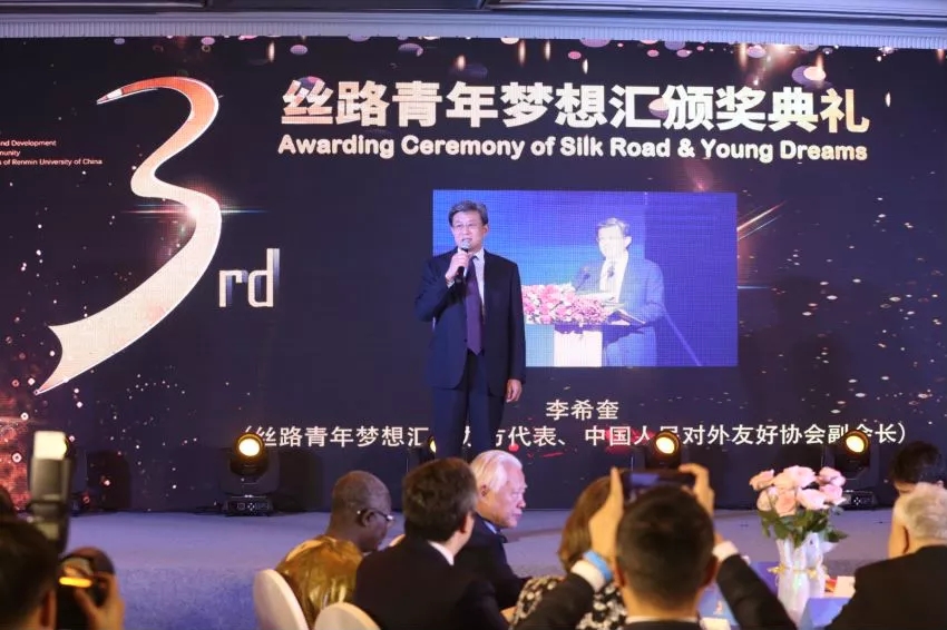 10月17日,由丝绸之路城市联盟、中国友好和平发展基金会、北京丝绸之路合作与发展促进会、中国人民大学重阳金融研究院共同主办的第三届“丝路青年梦想汇”颁奖典礼在北京举行。格鲁吉亚驻华大使Archil Kalandia阁下、贝宁驻华大使Simon Pierre Adovelande阁下、马来西亚驻华大使YM Raja Dato' Nushirwan Zainal Abidin阁下、厄瓜多尔驻华使馆领事Javier Fernando Sanchez Lopez、埃及驻华使馆参赞Dr. Omayma Ghanem、日本驻华使馆参赞伊藤直人、全国政协常委、中国美术馆馆长吴为山、中央外事办公室前副主任吕凤鼎、国务院参事樊希安、中国人民对外友好协会副会长李希奎、中国民族文化艺术基金会秘书长高广旭、中联部中国民间组织国际交流促进会副秘书长王珂、中国驻意大利、瑞士前大使董津义、中国驻葡萄牙前大使黄松甫、中央电视台前副台长洪民生、国际在线副总裁何清、北京社工委处长陈权余等百余名嘉宾,共同见证属于111名来自32个丝路沿线国家获奖选手的高光时刻。