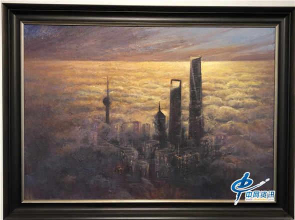 【经东网书画】上海正向世界卓越城市迈进,是中国繁华都市的代表,也是对外形象的窗⼝。更是哺育我们成⻓的故乡……。在上海有这么⼀位画家,其作品《魔都天际线》就将上海这座⼤城市天际线的变化通过他的画笔展现得淋漓尽致,朝霞时分,天空仿佛成为⼀块打翻了的调⾊板,炫美极了!作品在今年新冠平稳后海滩久事美术馆《浦江⻛景展》展出时,被布置在序厅正⾯,吸引众多观众驻⾜欣赏并留影。
