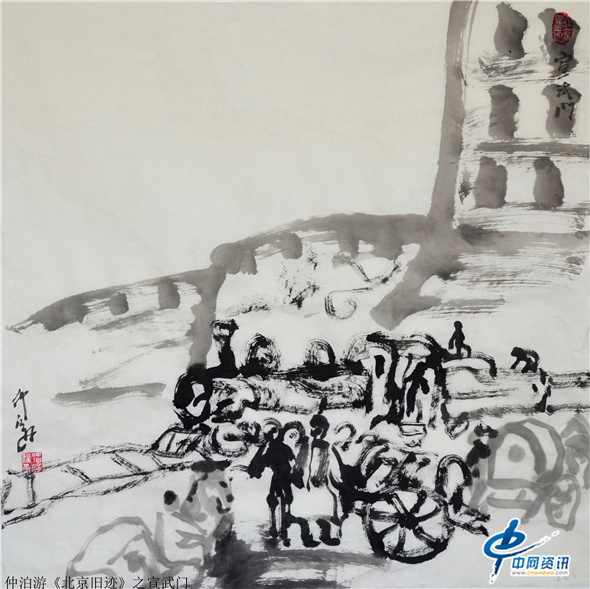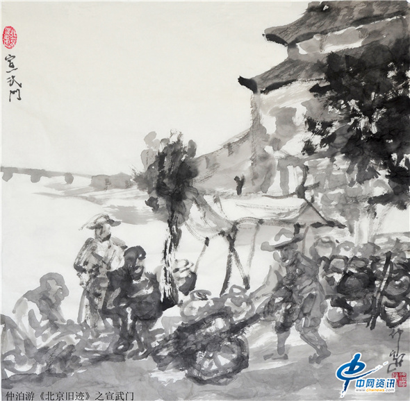 【经东网】仲泊游以水墨语言追忆北京旧迹,北京是一座有故事的都城,历史悠久,文化厚重,画家以点滴往事写意晚清民初的过往人物及老北京风景片段。去唤起人们对北京悠悠岁月的回味。