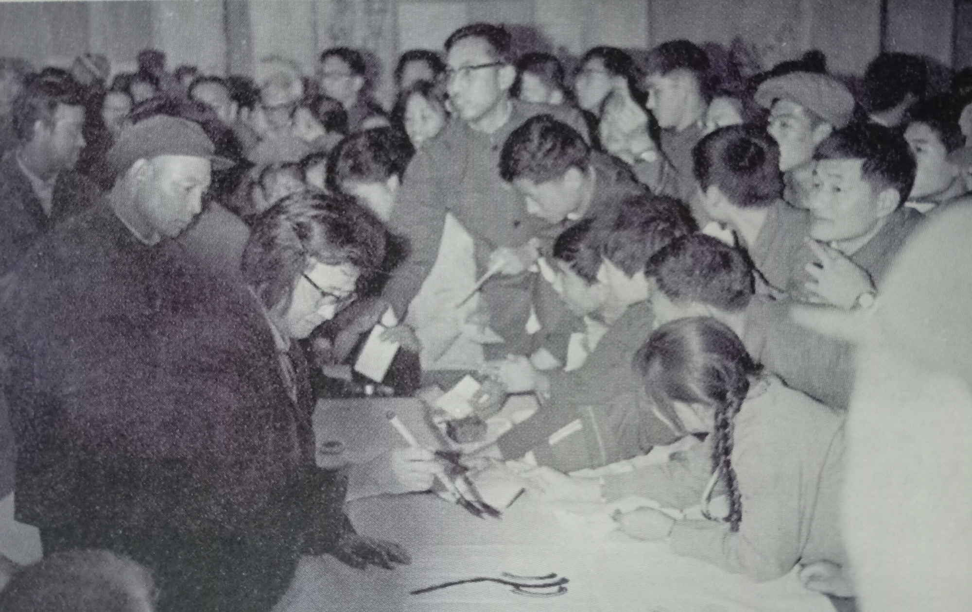 1979年国庆节,著名女书法家、历史学家、古文字学家、文博专家,中国人民大学新闻系教研室主任李文放先生在北京人民大会堂表演秦篆书法,博得阵阵热烈掌声。