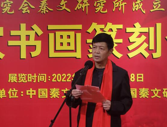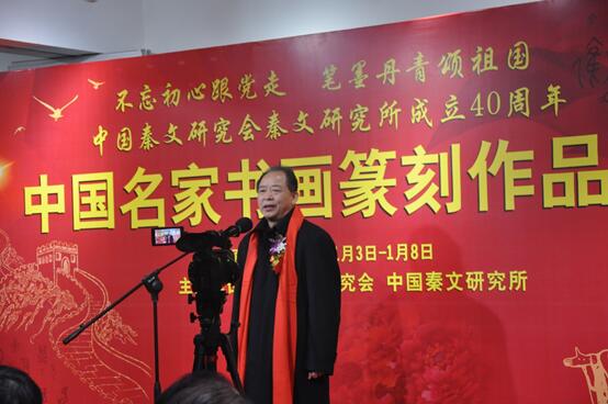 教授中国社会科学院研究员、中国先秦史学会会长宫长为先生、人民大学何建明教授、清华大学石小力教授分别从多个层面论述了中国秦文研究会的历史贡献和今后在传统文化发展方面的意义,并从多方面给出了在新形势下中国秦文研究会的发展意见和建议。中国名家书画篆刻展开幕式在11点准时开始,由中国秦文研究会副会长兼秘书长许红照主持。