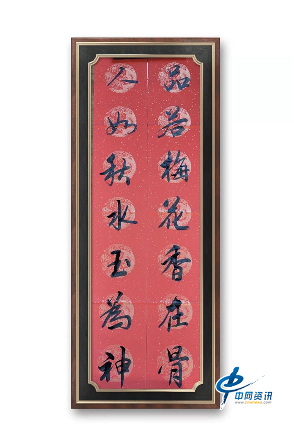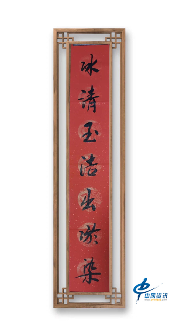 其书法融合了无声之音,无形之象,把佛家善与德融汇到字体中,形成书中有法,无法亦法的境界之中,他书法作品清秀,骨力内敛,刚柔相济,至终贯穿一种艺境之美。