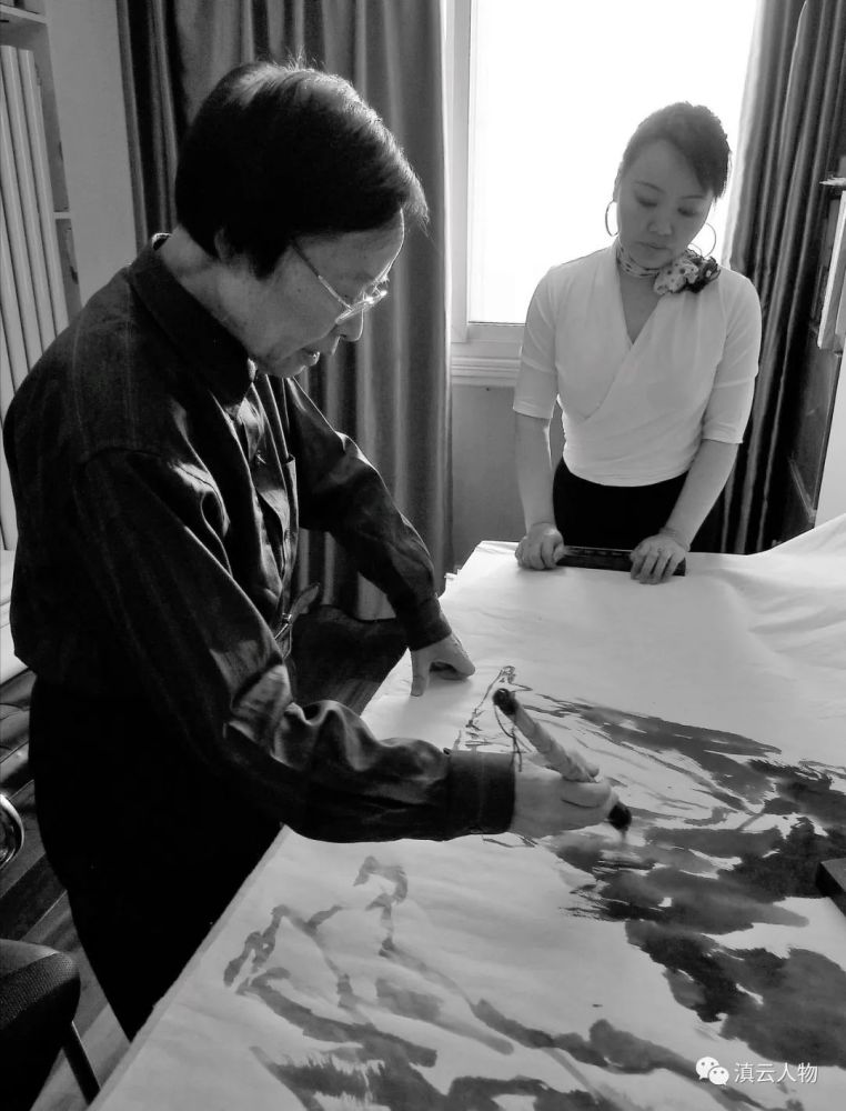 1965年,父亲实在找不到什么生活出路,就跟着一些湖南老乡来到了云南昆明,到处找工作,他本来是一位很好的画家,后来看到云南省林业厅的汽车修理厂招油漆工,也顾不得屈才了,便当了一个油漆工。父亲对颜色的调配总是又好又快,厂里经常让父亲出黑板报,一手好字和绝美的插图,总是引来很多人驻足围观,很多时候也需要父亲写大字报,一手苍劲有力的榜书也总是引来惊叹。汽车修理厂都知道有这样一个才子在这里当油漆工。由于父亲的艺术才能,当云南省林业厅要搞农业展览,需要画画写字的人,就把父亲抽调到云南省林业厅,派到云南省农业展览馆去画宣传画和写海报以及关于展览需要的美术工作。父亲的绘画和书法受到了广大群众和领导的广范好评,父亲被正式调到了云南省林业厅机关宣传处,成了真正的专业美术工作者。当年,昆明的很多招牌都是父亲书写,如:昆明百货大楼、(沿用至今)近日楼,及云南及全国很多公园景区的楹联、牌匾。父亲的绘画作品多次获得全国性的美术作品奖。当年的昆明东风广场巨幅毛主席像等领袖像,大多出自父亲的手。包括后来的华国锋和毛主席的“你办事,我放心”的巨幅油画,也是出自父亲之手。