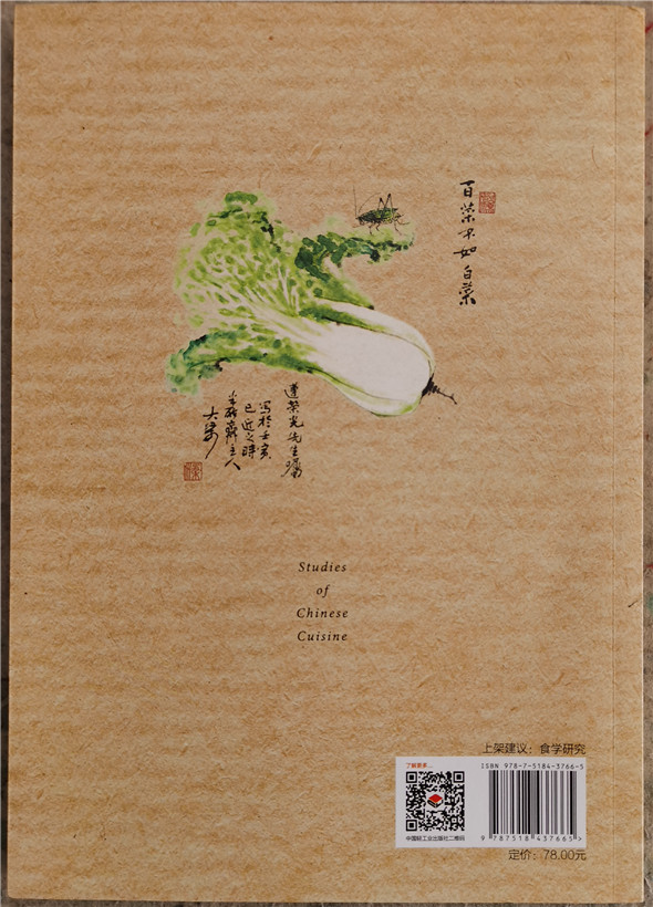 最近大梁先生收到赵荣光教授寄来的《中华菜论》一书。大梁为该箸作绘制了封底国画《百菜不如白菜》。
