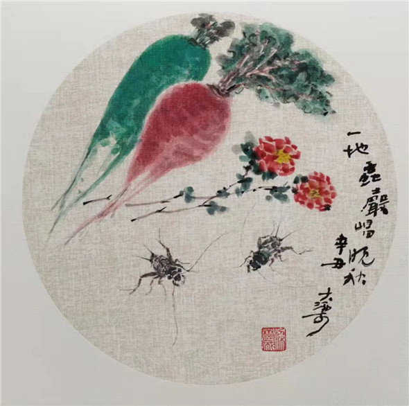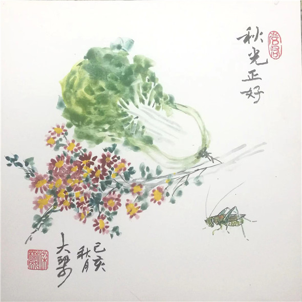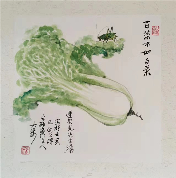 说到《清白图》大梁先生介绍说,中国画总有些画外之音,尤其民间传统,以谐音、象征、寓意等等手法表达人们对美好愿景的祈盼与心里暗示。事随时移,总有变化,但更多的是万变不离其宗。画白菜一直寓两种意愿,一则寓百财,二则寓清白。这清白,更多文人情怀,做人清清白白,当官更该如此,律己亦?人。