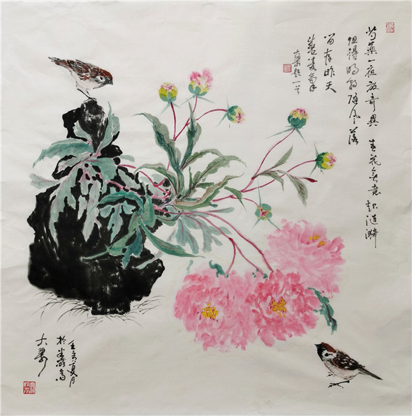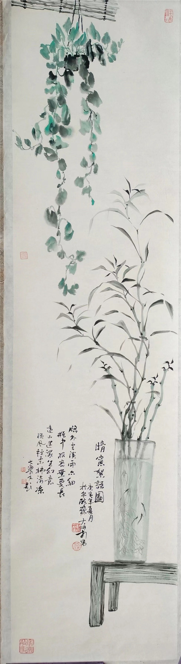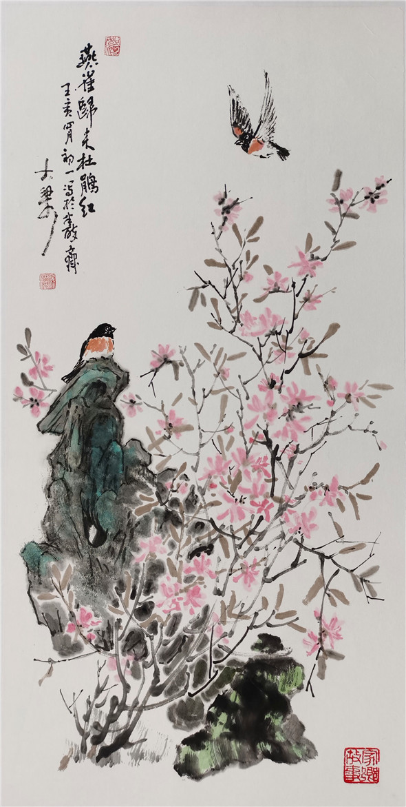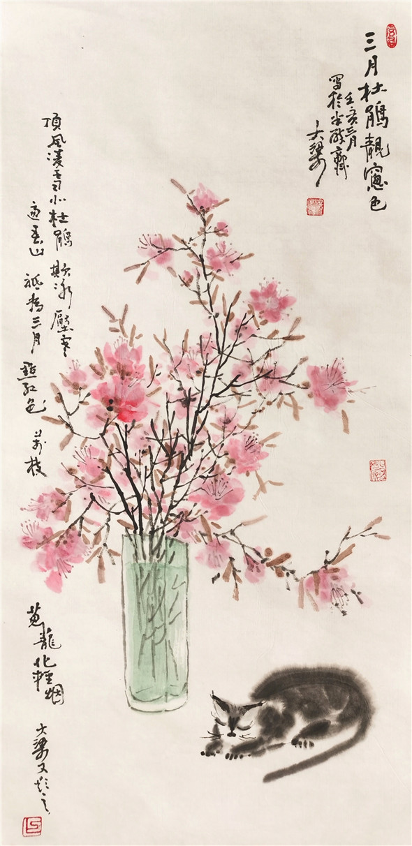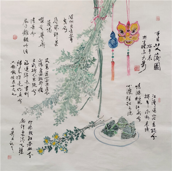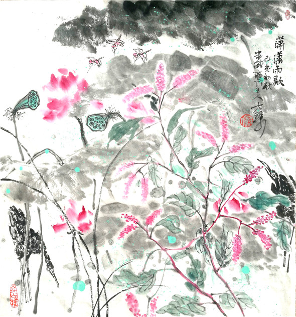 综上观之,可见大梁先生在题材上注重地方的一草一木,贴进百姓的日常生活,多是他们的身边事物,?且大梁本人对其也非常熟悉,热爱,加之细心观察,提练,注入人性化。从技法上看,他传统功力深厚,书法用笔活泼多变,线条质量高,为造型打下坚实基础,线条精到,下笔果断。对水墨理解深刻,运用灵活适度,为作品的生命力提供支撑。他的画多样性,重复干画一面的极少,又颇具个性,加之题款题诗与简练结构,使其作品有强烈的文人气息扑面而来。