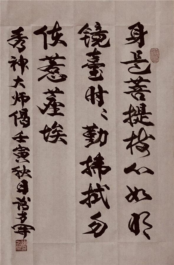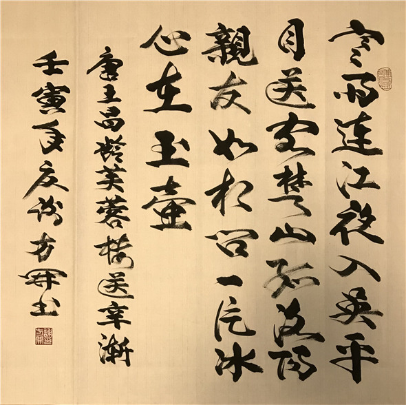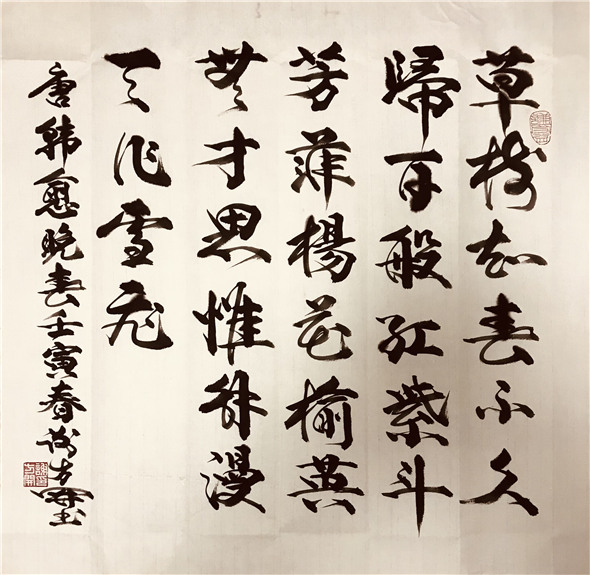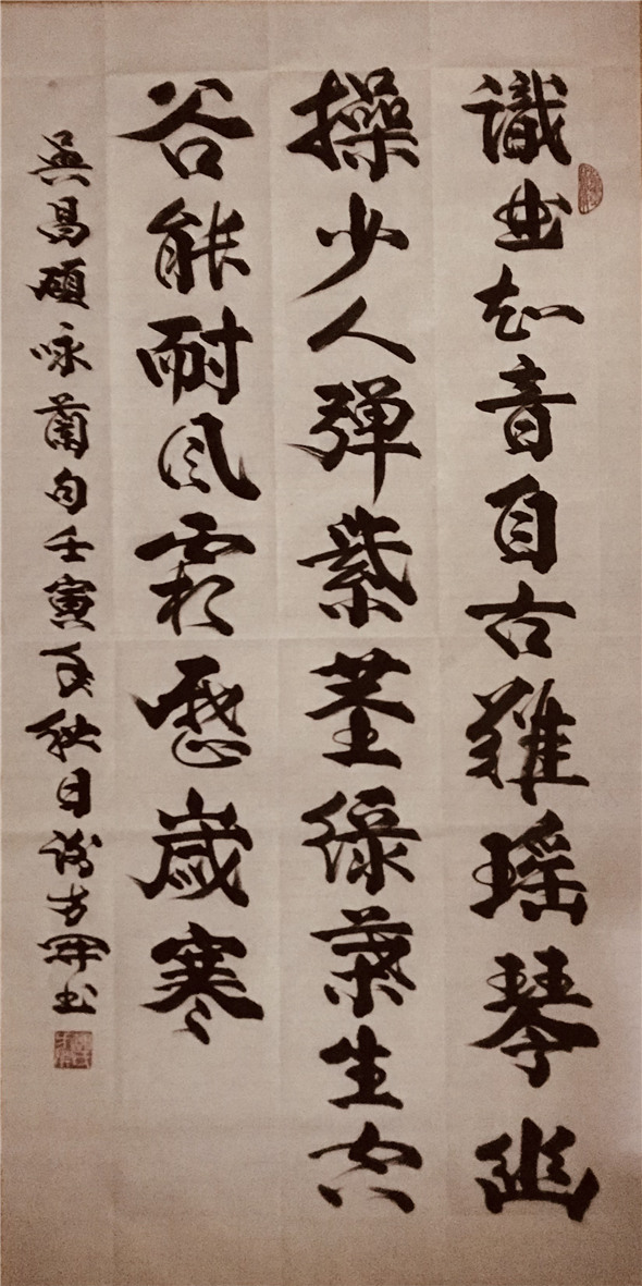 数十年来,钟情于书法艺术,临池不辍,辛勤耕耘,追古求真,博采众长,临历代诸名家墨迹,取众家之长,?长避短,其书法作品,笔法以唐楷为基调,行楷相间,草行交互,楷带行笔,行含草画。字体端庄大气、浑厚有力,神韵贯通、笔格遒劲,古意盎然。其书法艺术作品,深受广大社会人士及收藏界的喜爱和收藏。