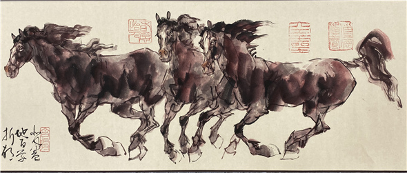 何以呼唤大写意精神归去来兮?余以为对吾提出之水性、纸性、墨性、色性、笔性、心性做深入研究,让其各尽其性,各修其能,可控与不可控相结合,人力与天力相生发,心为引领,六性合一,补书法课,补文化课,方能至臻至善至大化之境界。