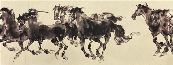 其水与墨合,可墨分五色墨分十色而层次无穷;能浓能淡,能干能湿,能冲能破,能幻能化。重若崩云至黑至浓如彩石滚滚而来下,轻若蝉翼尽微尽妙若轻烟飘飘之袅袅。且墨色丰富,层次分明,水渍墨痕发其韵,叠加相撞臻其妙。水墨淋漓尽显造化之功,犹如太极玄境。至真至味,内涵不绝。故水墨是中国画之重大看点也,也是历代中国画大师致力创造艺术精华之所在。