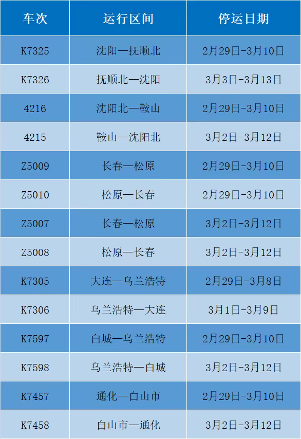 注:停运信息随时变化,铁路部门提醒广大旅客,相关列车运行信息以车站公告为准,请旅客密切关注12306铁路客服网站及车站公告,了解最新列车运行动态,合理安排行程。(总台央视记者 韦昊岩)