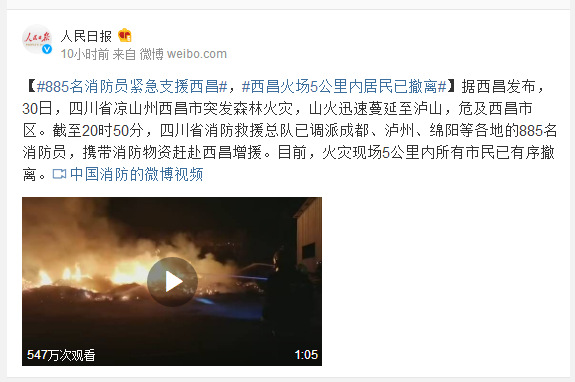 据西昌发布,30日,四川省凉山州西昌市突发森林火灾,山火迅速蔓延至泸山,危及西昌市区。截至20时50分,四川省消防救援总队已调派成都、泸州、绵阳等各地的885名消防员,携带消防物资赶赴西昌增援。目前,火灾现场5公里内所有市民已有序撤离。