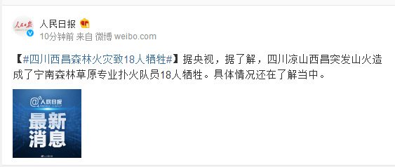 四川西昌森林火灾致18人牺牲