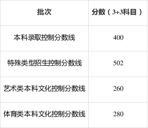 2020年上海市普通高等学校秋季招生本科各批次录取控制分数线经审定公布如下: