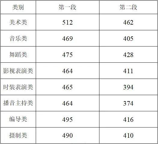 艺术类第二批专业省统考各类别综合分分段线