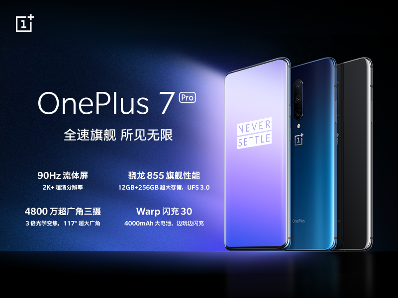 5月16日,一加在北京雁栖湖国际会展中心举办新品发布会,现场发布一加7系列新品。一加7系列新品包含一加7和一加7 Pro两款手机产品,均搭载时下顶级的高通骁龙™855移动平台处理器,最高12GB RAM+256GB ROM存储配置,全系标配标配UFS 3.0闪存。一加7 Pro采用了一块独家定制的90Hz流体屏,是业内首款2K+、90Hz刷新率的OLED显示屏,滑动跟手性极佳,屏幕显示效果惊艳,90Hz流体屏还获得了DisplayMate A+,HDR/HDR10+和德国VDE防蓝光三项权威认证,为用户带来轻快流畅的使用体验。