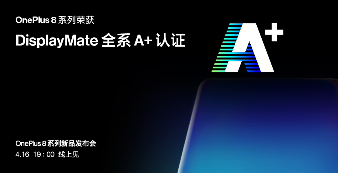 图:一加8全系产品获DisplayMate A+ 认证