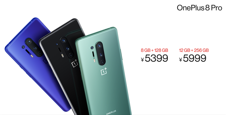 一加 8 有黑镜、青空、银翼三种配色可选,售价3999元起。一加 8 Pro 有黑镜、青空、蓝调三种配色,售价5399元起