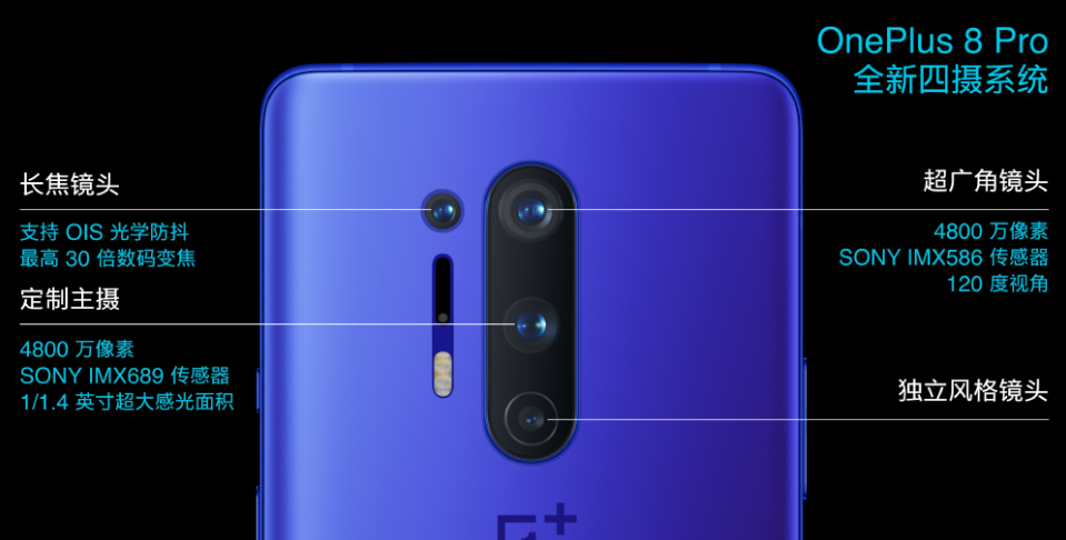 刘作虎表示,一加 8 Pro是一加相机有史以来最大的升级。一加 8 Pro 采用双 4800 万像素的超清四摄摄像头组合,主摄为定制的 4800 万像素索尼 IMX689 传感器,1/1.4 英寸超大的感光面积,使用高效的四拜耳阵列,四合一之后单像素达到 2.24 微米,堪比高端便携相机。 IMX689 支持原生双 ISO,在白天和夜晚两个场景中使用两档高低不同的原生ISO拍照,让照片更清晰更纯净。此外,IMX689 的全像素全向对焦技术是目前智能手机里最新、最快的对焦技术,按下快门就能留住精彩瞬间。
