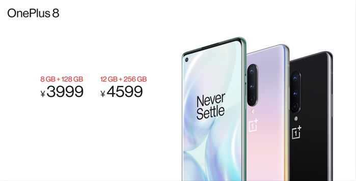 一加 8 有黑镜、青空、银翼三种配色可选,售价3999元起。一加 8 Pro 有黑镜、青空、蓝调三种配色,售价5399元起。
