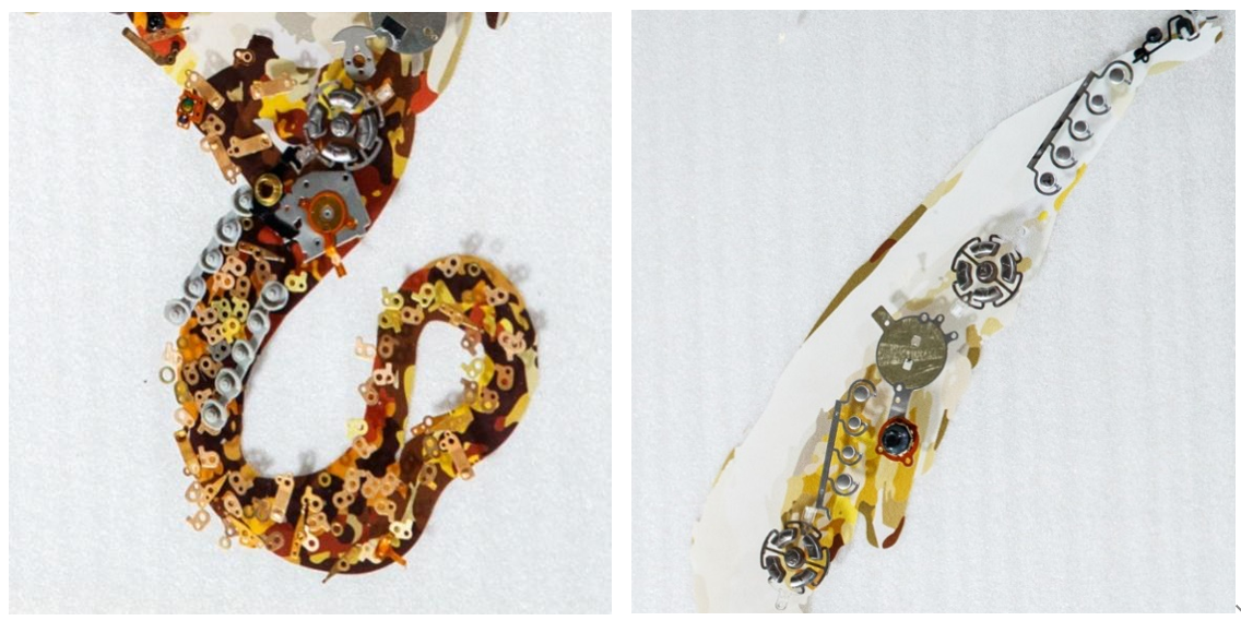 当你结合整幅作品细细观赏的时候,会发现各种大小不一的零件犹如获得了全新生命,以艺术姿态重新展现在观众面前。