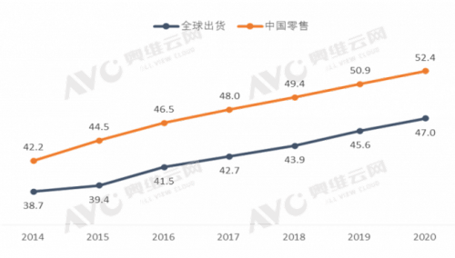 事实上,根据奥维云网(AVC)全渠道推总数据显示,2020年中国彩电市场电视平均尺寸达52.4寸,较全球市场的47寸高出5.4寸。其中,65英寸的销量占比达到17.9%,65寸、70寸、75寸电视的销售量同比分别上升1.4%、2.8%、1.2%、2.1%。超大屏幕的电视快速普及的趋势愈发明显。