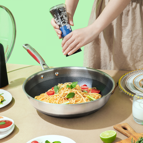 康巴赫第五代抗菌蜂窝锅得到了中国科学院的专业技术加盟,统一采用全新的抗菌不锈钢,拥有多层材质复合,具有耐腐、抗氧、抗菌抑菌三效合一的功能,有效抵抗大肠杆菌、金黄色葡萄球菌等多种细菌,抗菌率高达99%;同时也大大提升抗腐蚀性和耐磨性。本次锅体延用了蚀刻工艺技术在锅体表面形成密度更高的蜂窝网状结构,使得锅体均匀受热,实现锅铲与不粘涂层的有效隔离;开放式的蜂窝PRO增加油的流动性延展性,更大限度地提升了不粘效果,清洗也更便捷,用普通的抹布一抹就完全干净了。全新设计的精雕纹路,视觉上达到裸眼3D的效果,充满了未来科技感。